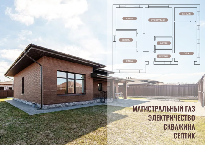 одноэтажный дом с гаражом - 22 000 000 р.Этот одноэтажный загородный дом с гаражом отлично подойдет для проживания небольшой семьи. На небольшой площади удалось сбалансировано разместить все помещения, необходимые для полноценной и комфортной жизни: большая светлая кухня-гостиная, три вместительные спальни, котельная и просторный гараж с котельной. Определенная лаконичность архитектурных приемов, воплощенная в этом проекте, вполне соответствует современной стилистике загородного домостроения. Небольшой дом для отдыха – это реальный шанс организовать свой досуг в максимально комфортных условиях.
